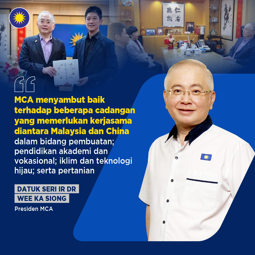 Presiden MCA, Datuk Seri Ir Dr Wee Ka Siong berkata, pihaknya sedia memberi sokongan padu berasaskan pengalaman yang luas bagi merealisasikan kerjasama ini demi kepentingan dan kebaikan khususnya kepada rakyat kedua-dua negara.